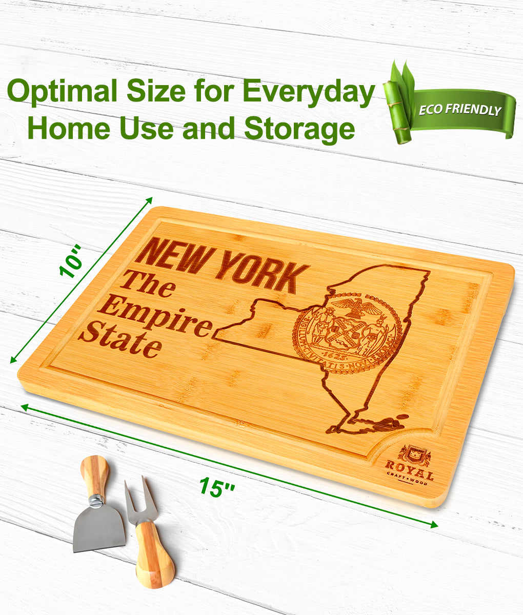 New York State Bamboo Cheese and Meat Cutting Board - Eco-Friendly Kitchen Essential with Built-In Handles