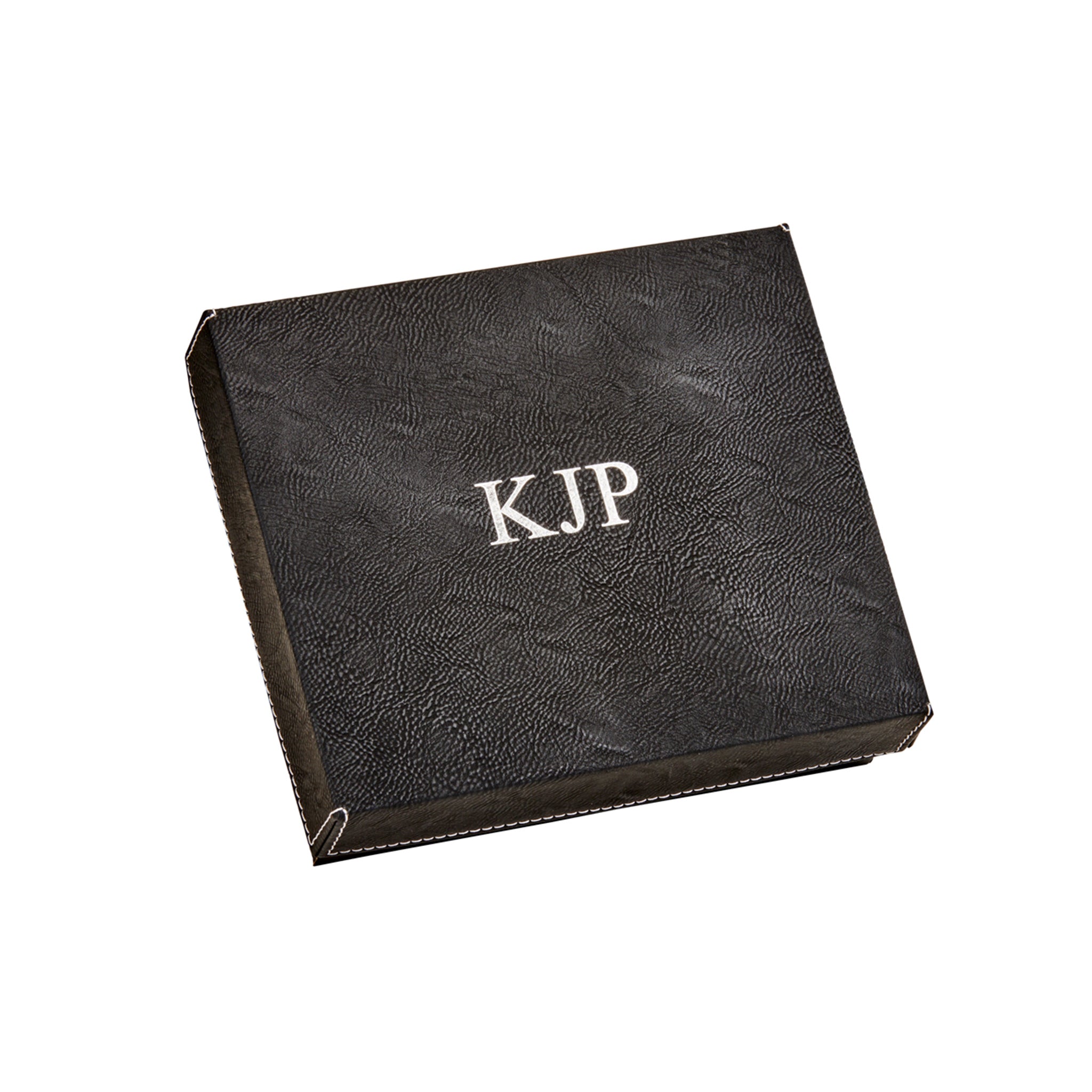 Elevate your gifting game with our exquisite Personalized Black Leatherette Flask & Stainless Steel Shot Glass Gift Set. Crafted for those who appreciate style and sophistication, this luxurious set is the perfect companion for your next celebration or personal indulgence.