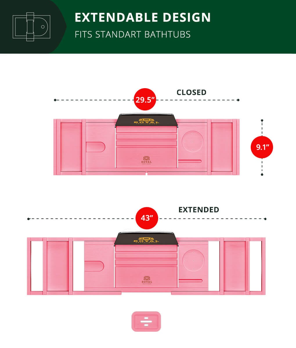This gorgeous bath caddy also makes a thoughtful gift for weddings, anniversaries, or holidays. Embrace the pinnacle of bathtub serenity with our Luxury Pink Bamboo Bath Caddy Tray and turn your bathroom into a personal spa.