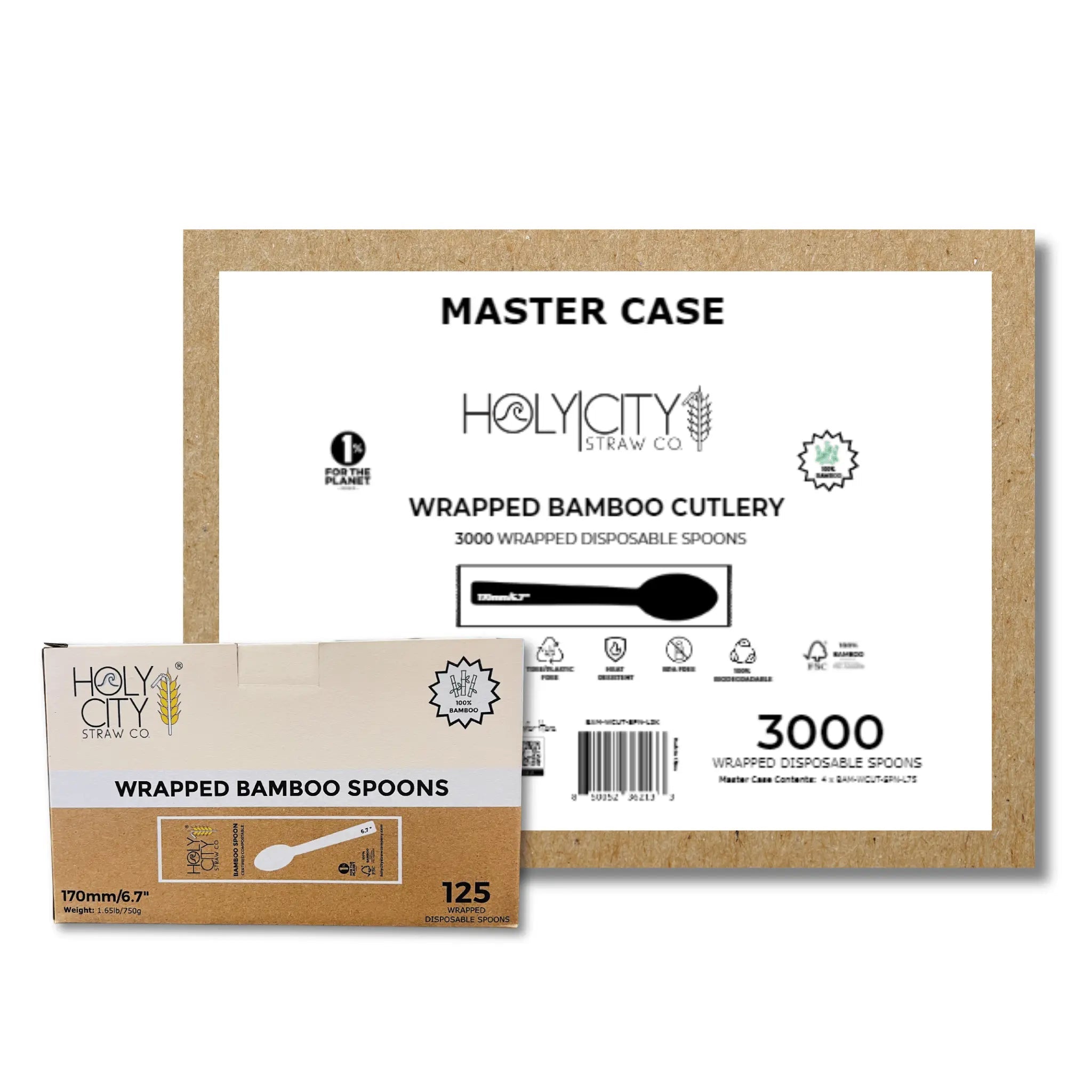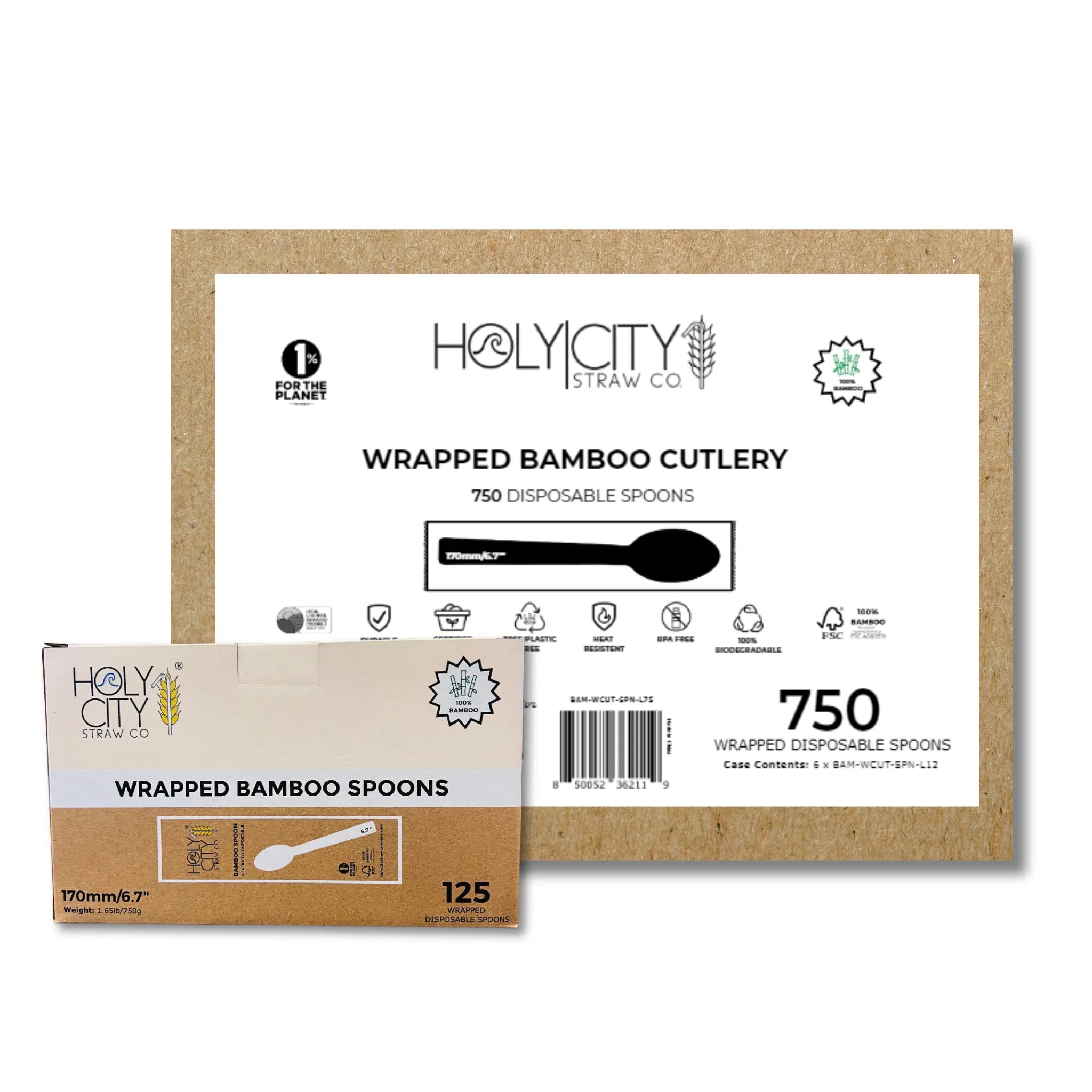 6.7" Wrapped Bamboo Spoons – Eco-Friendly Disposable Cutlery | Compostable & Biodegradable Utensils